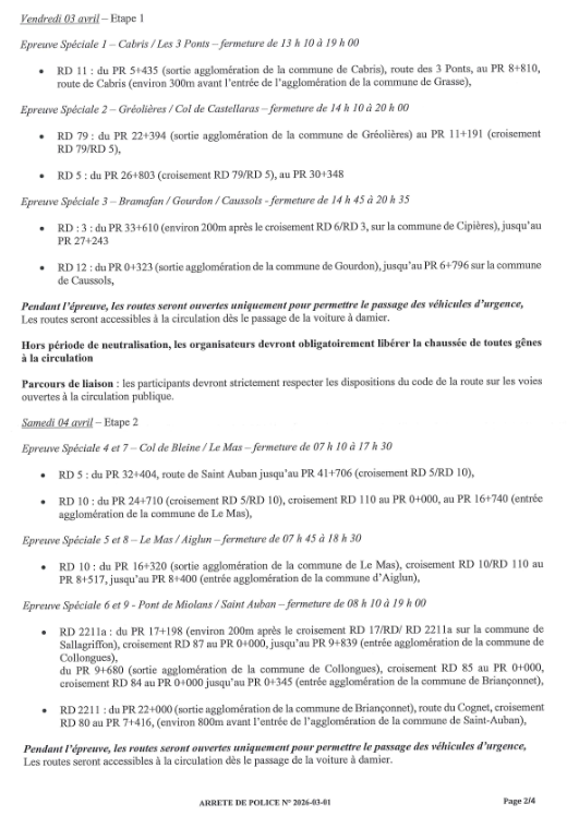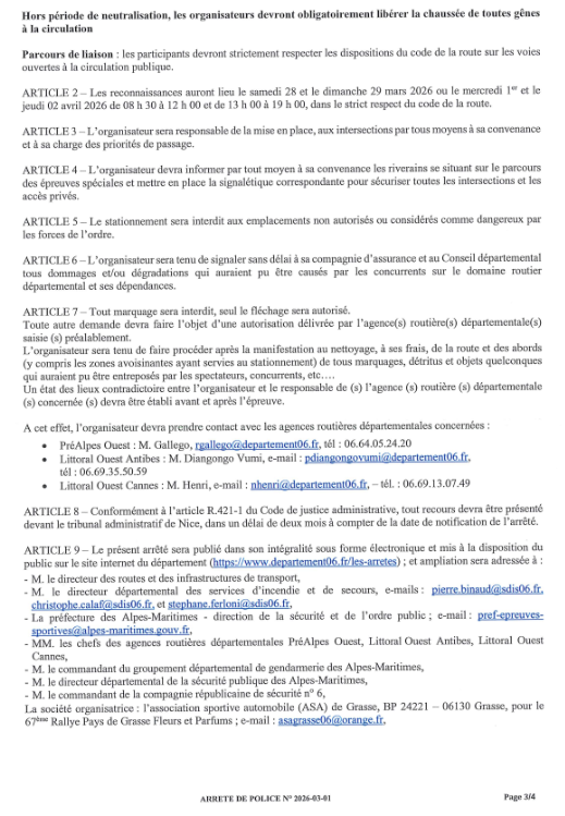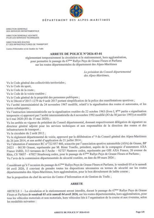Arrêté départemental Rallye de Grasse